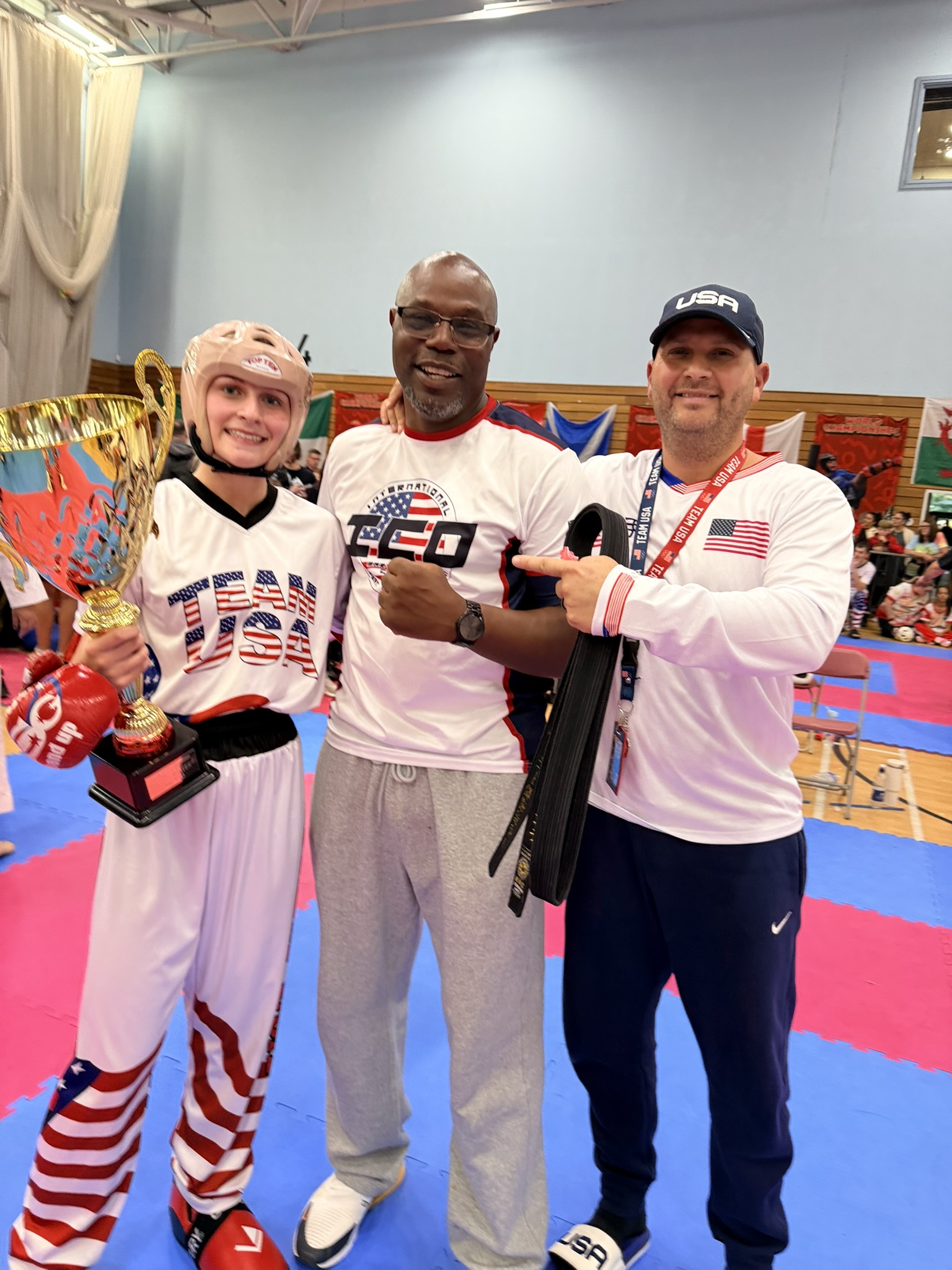 15-year-old Gabriella “Gabby” Viola, along with her teammates from the Viola dojo, the squad secured multiple gold medals across point-fighting, forms/kata, and full-contact divisions — underscoring the depth of their skill and training. Notably, Gabby was awarded the highest honor of the entire tournament: the title of Most Decorated Athlete and Overall Gold Medal Winner across all disciplines of the ICO World Championships. Sensei Cameron, Xander and Carter all finished in the Top Ten for overall medal count!